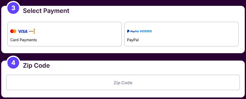 3. Choose a payment method.4. Your ZIP code is required for this step. It is safe to provide.